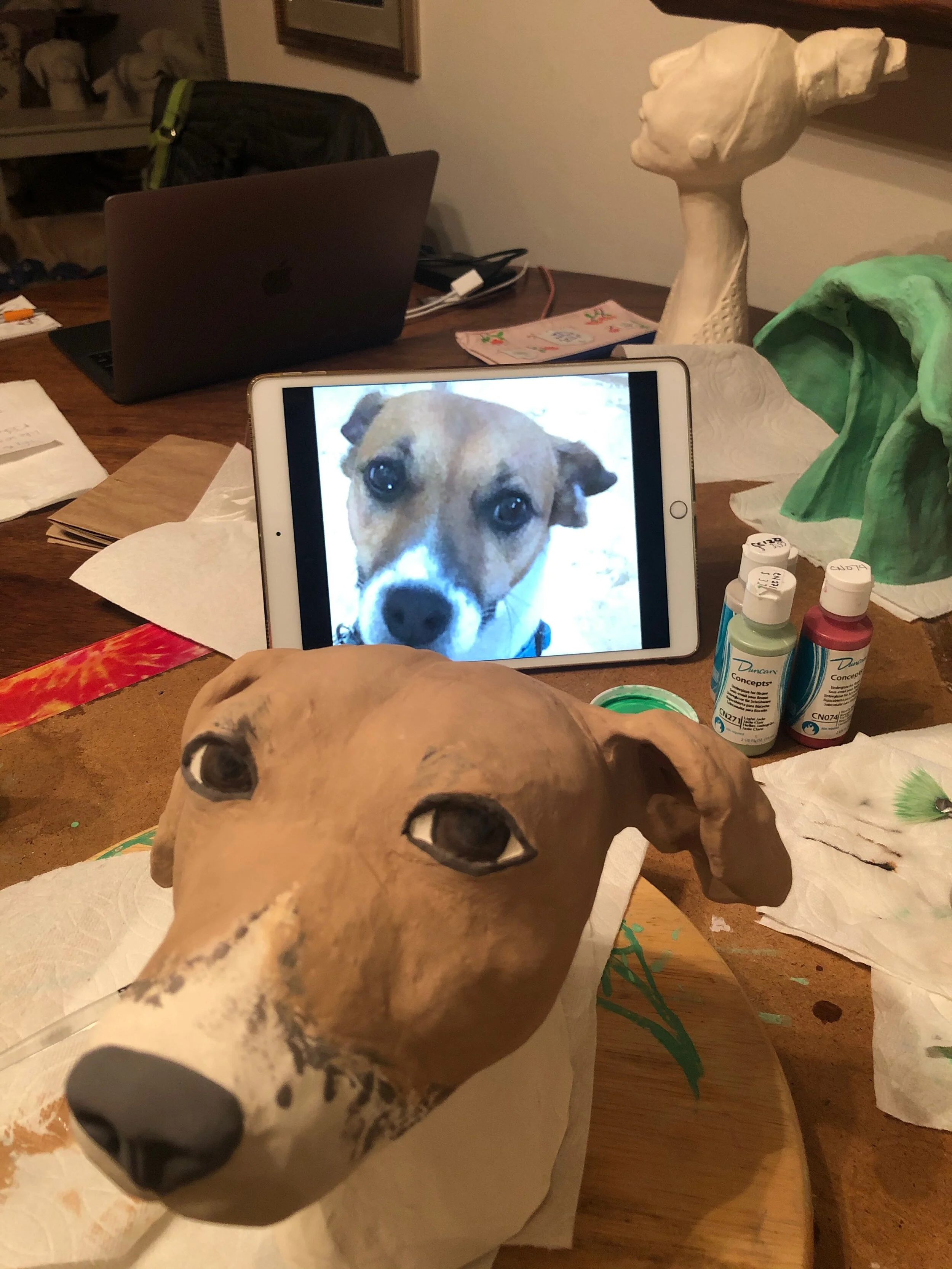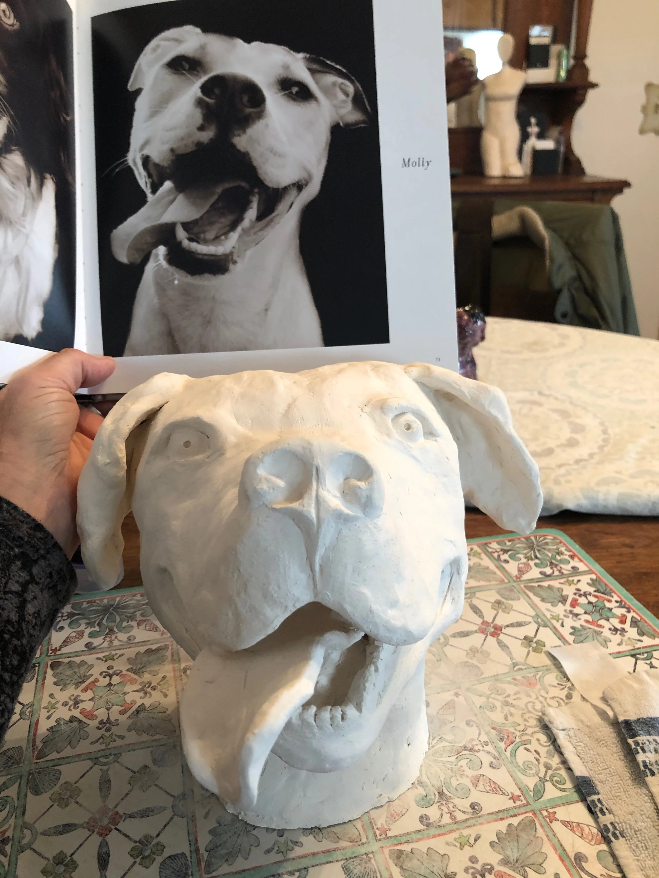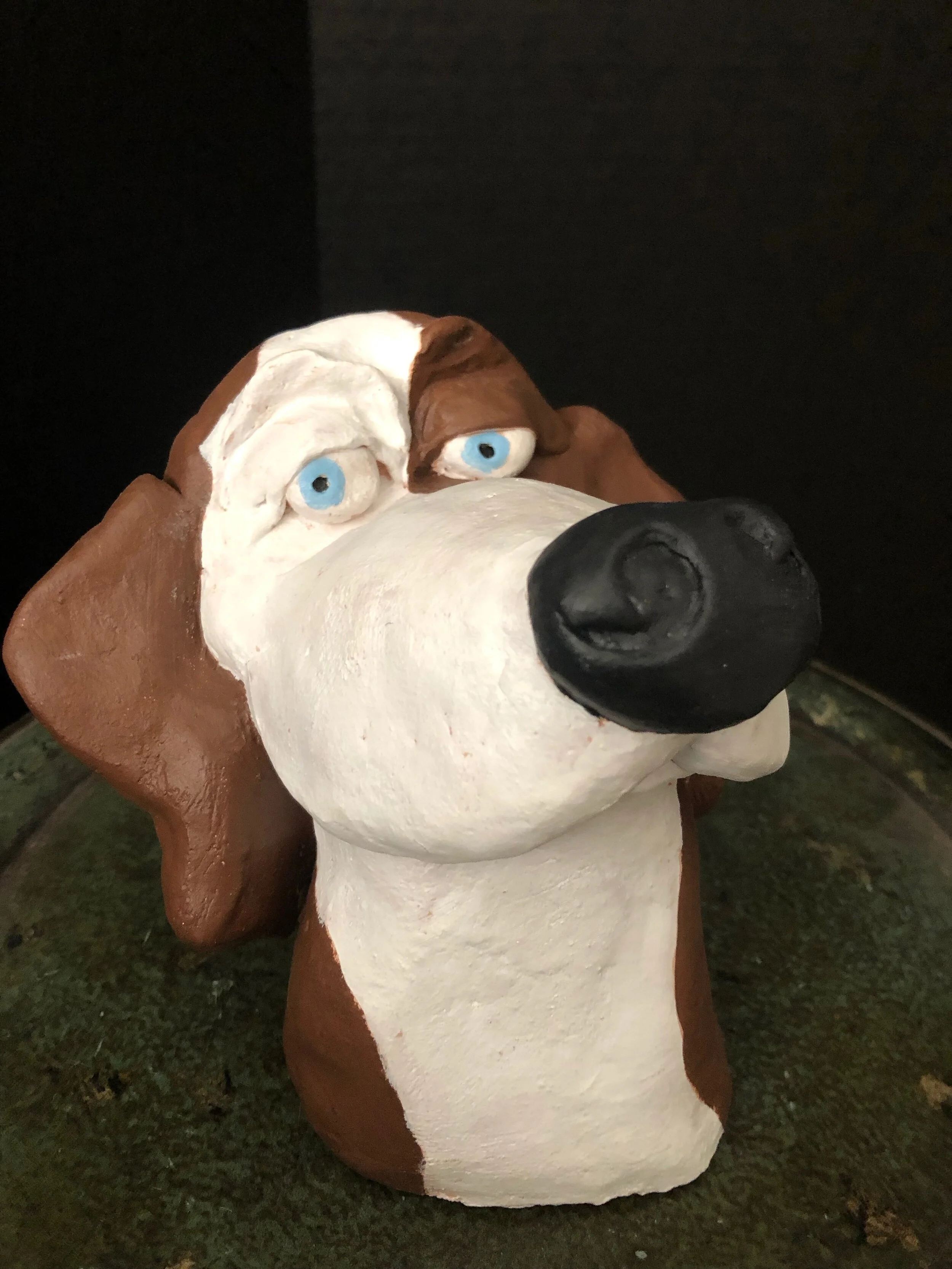 It was all about the love of dogs. Bridgit and her dear friend Cynthia Ott knew they wanted to do something that would help dogs. So they made 40 dogs sculptures to raise money for a local dog rescue and in that endeavor Clay Play Projects began. Some have said, “Bridgit went to the dogs” and they were right, of course! She saw the light of sweet love in dogs faces everywhere and has yet to get enough. Through this project she supports local dog rescues and in that way lifts her own heart to new heights.